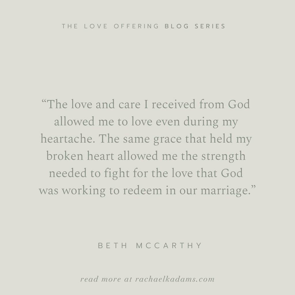 It was an honor to write about my own journey on loving through the hurt over on The Love Offering Blog Series. In my guest post, I share how God’s grace and the guidance of the Holy Spirit helped me to love my husband during the devastating circumstances in our marriage. In order to work to restore our marriage, I had to love my husband even through my deepest pain.